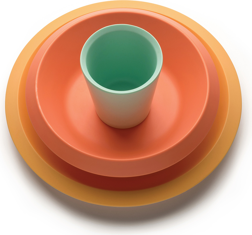 Ένα πιάτο, ένα μπολ και ένα φλιτζάνι – το βασικό σετ φαγητού Giro Kids είναι φτιαγμένο από πολύχρωμη μελαμίνη. Είναι ανθεκτικό στις φθορές και καθαρίζεται εύκολα.