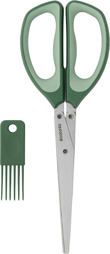 Το ψαλίδι βοτάνων που παρουσιάζεται εδώ είναι ένα στοιχείο αυτής της «νόστιμης» σειράς. Ελαφρύ, εύχρηστο, όμορφο και, πάνω απ' όλα, πρακτικό, το ψαλίδι θα σας επιτρέψει να προσθέσετε γεύση σε οποιοδήποτε πιάτο, κόβοντας τα βότανα σε οποιοδήποτε μήκος — άλλωστε, το σχοινόπρασο για τα αυγά χρειάζεται μεγαλύτερο κόψιμο από την ρίγανη για τα μακαρόνια μπολονέζ. Το ψαλίδι που παρουσιάζεται εδώ μπορεί να χειριστεί ακόμα και μανιτάρια (ναι, ξέρουμε ότι δεν είναι βότανα ;), καθώς διαθέτει έως και 5 λεπίδες από ανοξείδωτο ατσάλι. Η λαβή είναι κατασκευασμένη από πλαστικό και φινιρισμένη με σιλικόνη για μεγαλύτερη άνεση, κάτι που θα σας επιτρέψει να ψιλοκόβετε για πολλή ώρα με επιμονή, και όταν τελειώσετε μπορείτε εύκολα να πλύνετε το ψαλίδι κάτω από τρεχούμενο νερό, χρησιμοποιώντας το βουρτσάκι που παρέχεται.