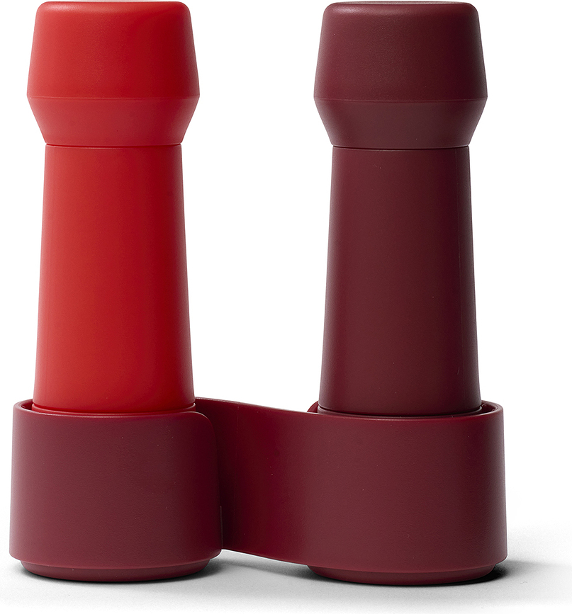 - Μια έξυπνη, εύκαμπτη λαβή κρατάει και τους δύο μύλους μαζί, αποτρέποντας την απώλειά τους και τη διαρροή μπαχαρικών κατά τη μεταφορά.