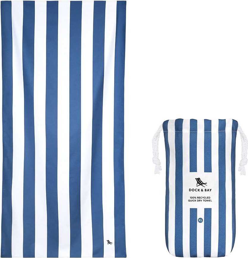 Νιώστε αυτή τη γλυκιά ανακούφιση όταν, μετά από μια κουραστική μέρα στην παραλία, πακετάρετε μια πετσέτα τόσο στεγνή και ελαφριά όσο ένα πούπουλο. Ξεχάστε την δυσάρεστη μυρωδιά μούχλας και τα κιλά άμμου, γιατί η πετσέτα παραλίας γρήγορου στεγνώματος Dock & Bay αλλάζει τα δεδομένα για τις καλοκαιρινές σας διακοπές.