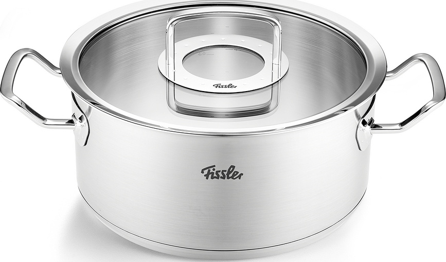 Η ελκυστική, κομψή εμφάνιση δεν είναι η μόνη ποιότητα της κατσαρόλας Original Profi Collection της Fissler. Ξεχωρίζει επίσης για την ευελιξία της και την εξαιρετική της αντοχή. Το αεροστεγές διαφανές καπάκι διευκολύνει την παρακολούθηση του μαγειρέματος και επιταχύνει τη διαδικασία του βρασμού και του σιγοβρασίματος.