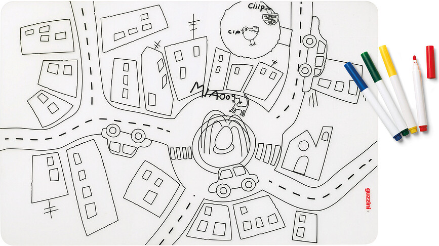 Δεν είναι απλώς σουπλά. Είναι επίσης ένα επαναχρησιμοποιούμενο μπλοκ ζωγραφικής που μπορεί να πλυθεί και να γεμίσει ξανά με χρώματα! Το σετ Bambi της Guzzini περιλαμβάνει επίσης 4 μαρκαδόρους.