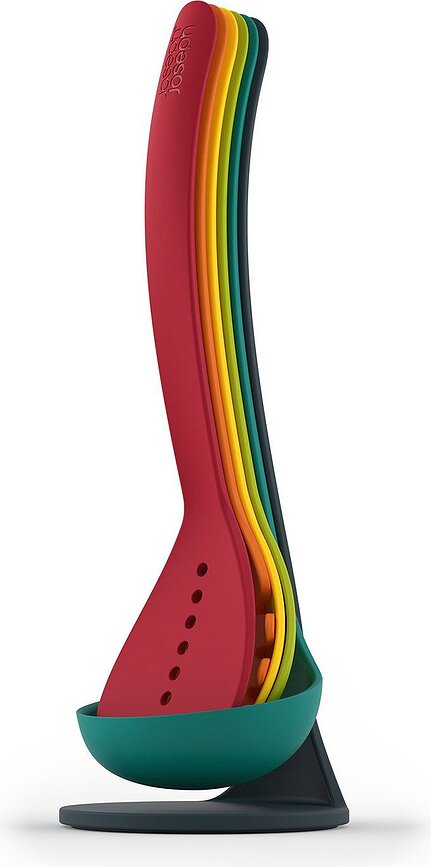 Το σετ αξεσουάρ κουζίνας Nest είναι μια πραγματική ευκολία σε κάθε κουζίνα. Τα πέντε χρήσιμα εργαλεία κουζίνας που περιλαμβάνονται στο σετ θα σας βοηθήσουν στην προετοιμασία των γευμάτων, κάνοντας τον χρόνο που περνάτε γύρω από κατσαρόλες που αχνίζουν, τηγάνια που τσιτσιρίζουν και φούρνους που ψήνουν πιο απολαυστικό. Ο σχεδιασμός του σετ σημαίνει ότι δεν χρειάζεται επιπλέον αξεσουάρ, όπως μια ράγα ή κρεμάστρες. Τα εργαλεία του σετ Nest στέκονται όρθια από μόνα τους, δημιουργώντας μια εντυπωσιακή βάση. Αυτό οφείλεται στους μαγνήτες που είναι ενσωματωμένοι στο πλαστικό και συγκρατούν το σετ στη βάση. Τον ρόλο της βάσης αναλαμβάνει η κουτάλα σούπας. Κατασκευασμένα από υλικό ανθεκτικό στη θερμότητα (έως 200 βαθμούς Κελσίου), τα εργαλεία ανταποκρίνονται άριστα σε όλες τις εργασίες της κουζίνας. Το σετ περιλαμβάνει σπάτουλα, κουτάλα για σπαγγέτι, τρυπητή κουτάλα, κουτάλα ανάδευσης και κουτάλα σούπας. Το σετ Nest είναι μια πρωτότυπη ιδέα δώρου για όσους απολαμβάνουν τις στιγμές που περνούν στην κουζίνα δημιουργώντας λαχταριστές γαστρονομικές δημιουργίες.