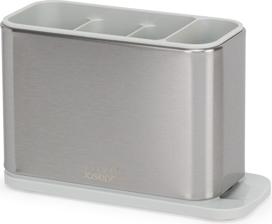 Η θήκη για μαχαιροπίρουνα από ανοξείδωτο ατσάλι της σειράς Surface είναι μια απαραίτητη προσθήκη σε κάθε κομψή και μοντέρνα κουζίνα. Το δοχείο διαθέτει τέσσερα τμήματα – τρία για μαχαιροπίρουνα κανονικού μεγέθους και ένα για μικρότερα αντικείμενα, όπως κουταλάκια του καφέ ή του τσαγιού. Στη βάση του δοχείου υπάρχει ένα άνοιγμα με αυλάκι, το οποίο χρησιμεύει για την αποστράγγιση του νερού που στάζει από τα μαχαιροπίρουνα. Το μόνο που χρειάζεται να κάνετε είναι να γείρετε τη θήκη. Το δοχείο πρέπει να καθαρίζεται με ένα νωπό πανί – η χρήση τραχιών υλικών και ισχυρών χημικών καθαριστικών δεν συνιστάται.