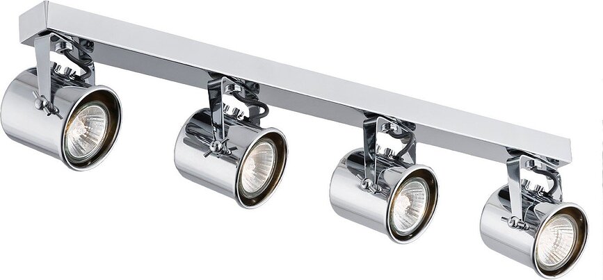 Η τριπλή μπάρα Alter 4 που παρουσιάζεται εδώ είναι μια μπάρα με τέσσερις κινητούς προβολείς. Η πηγή φωτός δεν περιλαμβάνεται. Οι προβολείς πρέπει να έχουν διάμετρο 6 cm και μήκος 6,5 cm. Ισχύς: 4 x 9W LED GU10. Τροφοδοσία: 230V. Βαθμός προστασίας IP20.