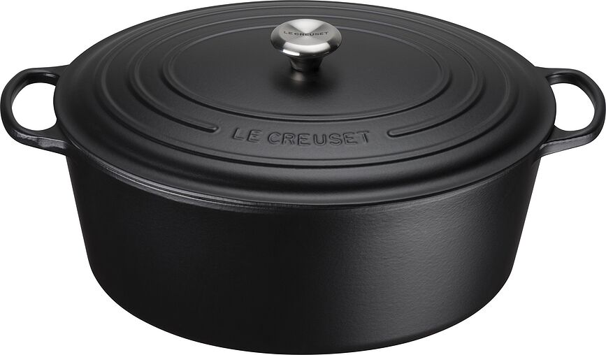 Εδώ είναι το μεγαλύτερο οβάλ ταψί της συλλογής Signature της γαλλικής μάρκας Le Creuset – σας επιτρέπει να μαγειρεύετε εντυπωσιακά πιάτα για πολλούς ανθρώπους, καθώς και διάφορα είδη κονσερβών, είτε λαχανικών είτε φρούτων. Είναι κατάλληλο για μαγείρεμα, σιγοβράσιμο, ψήσιμο, σερβίρισμα... Είναι απολύτως ευέλικτο! Κύρια χαρακτηριστικά:
