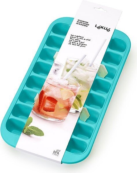 Η εύκαμπτη φόρμα για 32 μεγάλους παγοκύβους από την Lekue είναι φτιαγμένη από εξαιρετικά ανθεκτικό υλικό. Χάρη στον συμπεριλαμβανόμενο δίσκο, η φόρμα είναι σταθερή, εύκολη στη μεταφορά και εύκολη στην τοποθέτηση στην κατάψυξη. Χάρη στην αντικολλητική επίστρωση και την ευελιξία, η αφαίρεση των παγοκύβων είναι παιχνιδάκι και πανεύκολη.