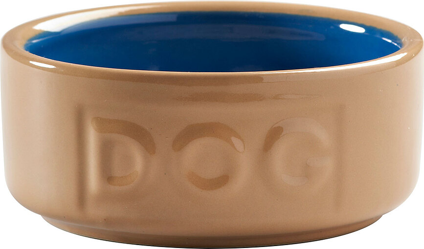 - Το συγκεκριμένο μπολ είναι ανθεκτικό, ευέλικτο και πολύ εντυπωσιακό: διαθέτει ανάγλυφη τη λέξη "DOG:" στην επιφάνειά του και το εσωτερικό του είναι καλυμμένο με μπλε γλάσο.