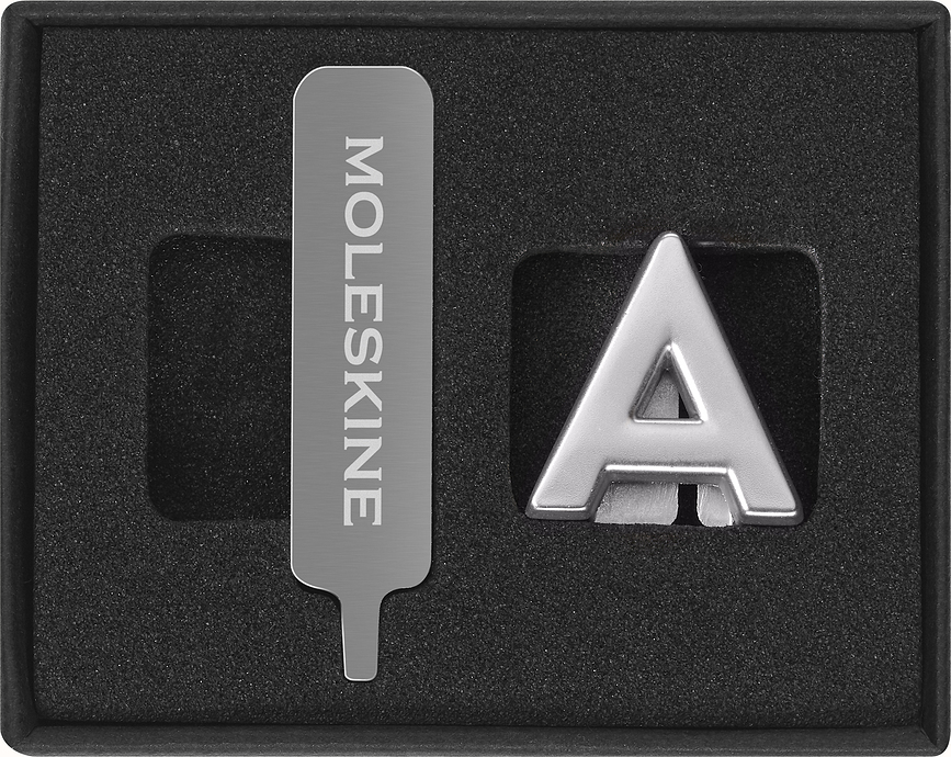 Τα σημειωματάρια Moleskine είναι μοναδικά (ο ίδιος ο Vincent van Gogh και ο Pablo Picasso τα χρησιμοποιούσαν). Και τώρα μπορούν να γίνουν ακόμα πιο προσωπικά με μια σειρά από γοητευτικές και κομψές ασημένιες καρφίτσες σημειωματάριου σε σχήμα γραμμάτων. Για να βεβαιωθείτε ότι το Moleskine σας δεν θα συγχέεται με κανένα άλλο, απλά επιλέξτε το γράμμα που σας αρέσει περισσότερο (ή έχει συμβολική σημασία για εσάς), καρφιτσώστε το στο λάστιχο με τη συμπεριλαμβανόμενη βίδα και είστε έτοιμοι!