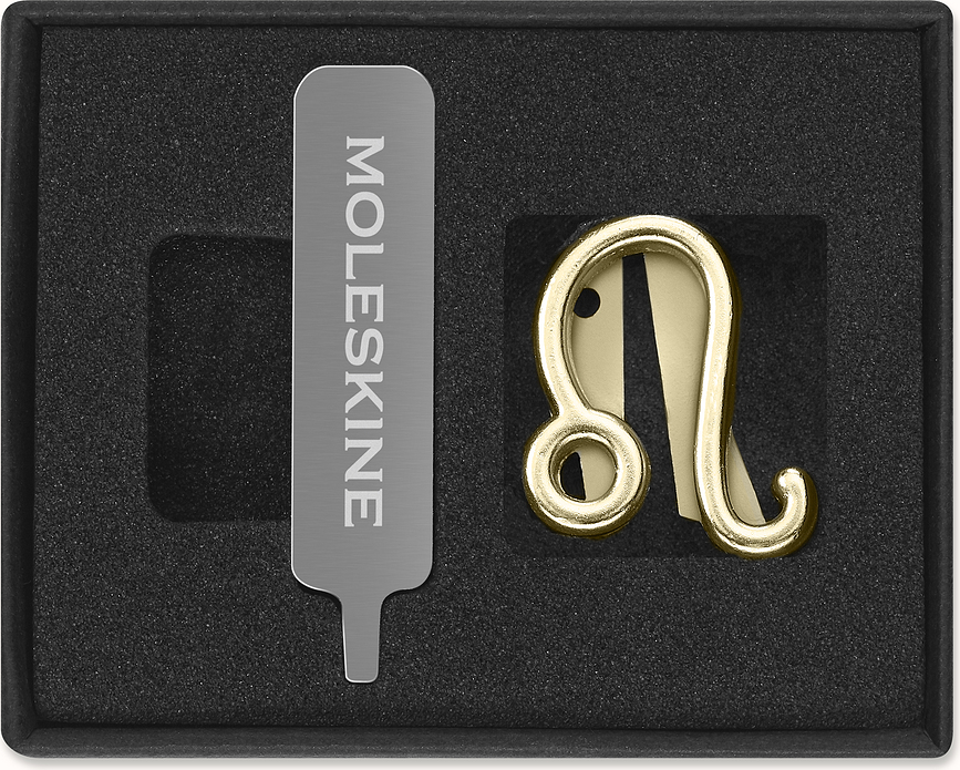 Μια χρυσή καρφίτσα για σημειωματάριο Moleskine με ζώδια είναι μια εξαιρετική ιδέα για να εξατομικεύσετε το αγαπημένο σας σημειωματάριο της επωνυμίας! Δείξτε στον κόσμο τι ζώδιο είστε ή χρησιμοποιήστε πολλές καρφίτσες για ένα δημιουργικό αποτέλεσμα. Συνδέστε γρήγορα τη διακόσμηση στο λάστιχο του σημειωματάριου με τη βίδα που περιλαμβάνεται.