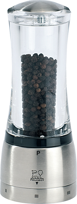 Η Peugeot, ένα όνομα συνώνυμο με την τελειότητα για πάνω από 160 χρόνια, φημίζεται για το σχεδιασμό μύλων μπαχαρικών εξαιρετικής ποιότητας, που αγαπούν οι μεγαλύτεροι σεφ του κόσμου. Αυτό που τους κάνει να ξεχωρίζουν είναι η απαράμιλλη αξιοπιστία του μηχανισμού τους, ο οποίος είναι ειδικά προσαρμοσμένος στα εκάστοτε μπαχαρικά και συνοδεύεται από εγγύηση εφ' όρου ζωής, καθώς και ο μοντέρνος σχεδιασμός τους. Οι χειροκίνητοι μύλοι Daman για πιπέρι και αλάτι, που παρουσιάζονται εδώ, διαθέτουν ακρυλικό περίβλημα, το οποίο χωρίζεται από τη βουρτσισμένη ατσάλινη βάση με έναν δακτύλιο γραφίτη. Το εργονομικό τους σχήμα και η λιτή τους φόρμα τους καθιστούν ιδανικούς για καθημερινή χρήση. Το πατενταρισμένο σύστημα ρύθμισης πάχους άλεσης uSelect επιτρέπει την προσαρμογή του βαθμού άλεσης στις ανάγκες του χρήστη. Οι μύλοι Daman διατίθενται σε δύο μεγέθη.