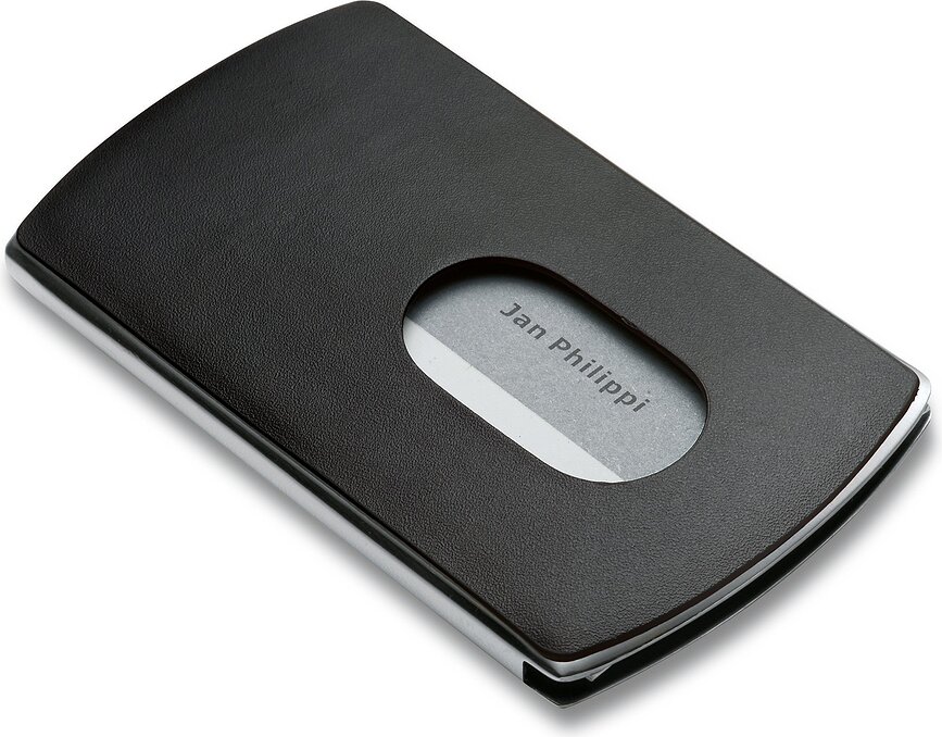 Η θήκη επαγγελματικών καρτών Nic της Philippi είναι ένα από εκείνα τα αξεσουάρ γραφείου που αξίζει να έχετε πάντα σε κοινή θέα, είτε στο γραφείο είτε στον χώρο υποδοχής ενός γραφείου, μιας μελέτης, ενός εστιατορίου ή ενός ξενοδοχείου. Η θήκη, κατασκευασμένη από γυαλισμένο ανοξείδωτο ατσάλι ή μαύρο δέρμα ανάλογα με το μοντέλο, έχει απλή, κομψή φόρμα και είναι εξοπλισμένη με ένα παράθυρο που σας επιτρέπει να δείτε το περιεχόμενό της (όνομα και επώνυμο, όνομα εταιρείας κ.λπ.). Ένας κομψός σύντροφος σε κάθε επαγγελματική συναλλαγή, θα αποτελέσει επίσης ένα τέλειο δώρο για κάθε άνδρα, είτε βρίσκεται στην αρχή είτε στην κορυφή της καριέρας του.