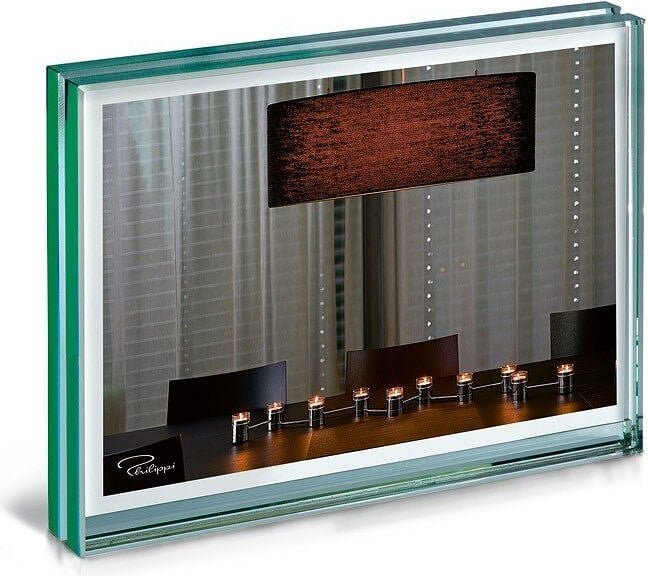 Η κορνίζα Vision είναι μια κορνίζα κατασκευασμένη εξολοκλήρου από γυαλί. Η μαγεία αυτού του υλικού θα δώσει στις αναμνήσεις σας, τις αξέχαστες στιγμές και τους σημαντικούς ανθρώπους μια ξεχωριστή γοητεία και χαρακτήρα. Ο σχεδιασμός της κορνίζας, που αποτελείται από δύο γυάλινες επιφάνειες, επιτρέπει να τοποθετήσετε μία ή δύο φωτογραφίες ανάμεσά τους (οπότε η Vision γίνεται μια διπλής όψης κορνίζα, η οποία φαίνεται ιδιαίτερα ελκυστική σε ένα μέρος όπως ένα γραφείο). Τα τρία διαθέσιμα μεγέθη επιτρέπουν την εμφάνιση φωτογραφιών διαφορετικών διαστάσεων.