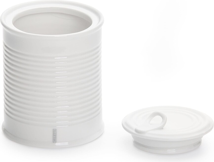 Το δοχείο σε σχήμα μεταλλικού κουτιού με καπάκι είναι ένα πρωτότυπο σκεύος από τη συλλογή Estetico Quotidiano της Seletti. Αν και το σχήμα του δοχείου θυμίζει ένα συνηθισμένο τενεκεδένιο κουτί, είναι φτιαγμένο από ένα ευγενές υλικό – λευκή, εκλεκτή πορσελάνη. Εφοδιασμένο με καπάκι, το σκεύος θα είναι το τέλειο δοχείο για μια ποικιλία από δημητριακά, ζυμαρικά, καθώς και αλάτι και πιπέρι. Διατίθεται σε τρία μεγέθη, τα οποία μπορούν να χρησιμοποιηθούν για να δημιουργήσετε μια ενδιαφέρουσα σύνθεση στον πάγκο της κουζίνας.