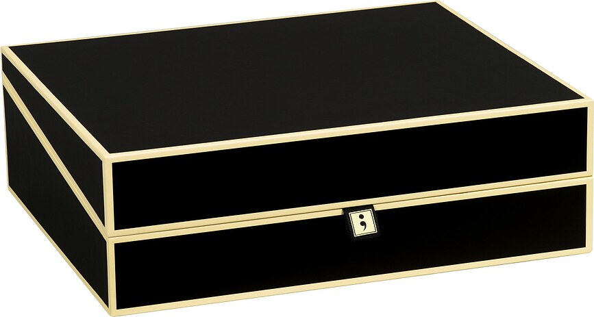 Αν έχετε βαρεθεί να ψάχνετε μέσα σε στοίβες από χαρτιά και αντικείμενα γραφείου, αβίαστα στοιβαγμένα ή πεταμένα πρόχειρα, το κουτί εγγράφων Die Kante της Semikolon θα είναι σαν σωτήρας. Πρόκειται για ένα επίπεδο κουτί από σκληρό χαρτόνι και διαθέτει ένα πρακτικό επάνω καπάκι με λαβή με το λογότυπο της μάρκας. Θα χωρέσει φύλλα, περιοδικά και καταλόγους όχι μεγαλύτερους από Α4 και μπορεί επίσης να αποτελέσει έναν ενδιαφέροντα τρόπο αποθήκευσης κάθε είδους αξεσουάρ (όχι μόνο γραφείου). Χάρη στη δυνατότητα συναρμολόγησης μιας ειδικής οργάνωσης με διαχωριστικά, το κουτί μπορεί να γίνει ένα ιδανικό δοχείο για συνδετήρες, σημειώσεις και όλα τα μικρά αντικείμενα. Όπως και άλλα προϊόντα Semikolon, διατίθεται σε πολλά χρώματα, τα οποία μπορούν να συνδυαστούν μεταξύ τους σε αρμονικούς συνδυασμούς.