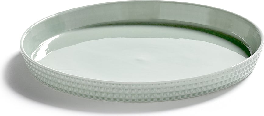 - Το ελαφρώς ανασηκωμένο χείλος όχι μόνο προσθέτει βάθος στο πιάτο αλλά και πρακτικά αποτρέπει το περιεχόμενο από το να γλιστρήσει.