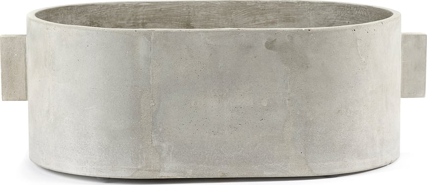 - Το οβάλ σχήμα με ορθογώνιες λαβές αποτελεί μια συνειδητή απόκλιση από το κλασικό, δίνοντας στη ζαρντινιέρα μια δυνατή, γλυπτική εμφάνιση.