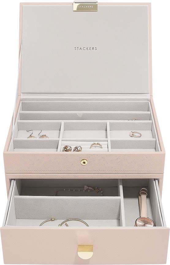 Διαθέσιμες εκδόσεις:- Stackers Classic Κοσμηματοθήκη διπλή με συρτάρι, ανοιχτό ροζ, Stackers Classic Κουτί Κοσμημάτων διπλό, με συρτάρι, ανοιχτό μπεζ, Stackers Classic Κασσετίνα Κοσμημάτων διπλή, με συρτάρι, ταούπε, Stackers Classic Κουτί Κοσμημάτων διπλό, με συρτάρι, ναυτικό μπλε, Stackers Classic Κοσμηματοθήκη διπλή με συρτάρι, γκρι