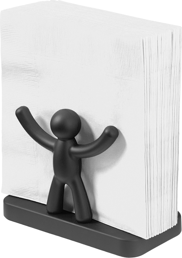 Ποιες ιδιότητες πρέπει να έχει ο ιδανικός άντρας; Σύμφωνα με την επωνυμία Umbra, ή πιο συγκεκριμένα σύμφωνα με τον σχεδιαστή Alan Wisniewski, πρέπει να έχει αίσθηση του χιούμορ, άψογη σιλουέτα, να βοηθά μια γυναίκα στις περισσότερες δουλειές του σπιτιού και, φυσικά, να είναι δυνατός! Ο Buddy, ο ήρωας της επωνυμίας Umbra, αποδεικνύει για άλλη μια φορά ότι είναι αυτός που αξίζει να χαρακτηριστεί ιδανικός! Μία, δύο ή ακόμα και μια ολόκληρη δεσμίδα χαρτοπετσετών δεν μπορούν να τον λυγίσουν... ή να τον ρίξουν κάτω. Η πλαστική θήκη χαρτοπετσετών που παρουσιάζεται εδώ δεν θα αποδειχθεί μόνο ένα πρακτικό gadget, αλλά κυρίως ένα αντικείμενο συζήτησης και αναστεναγμών από τους καλεσμένους σας. Διαστάσεις: 15 x 9 εκ.